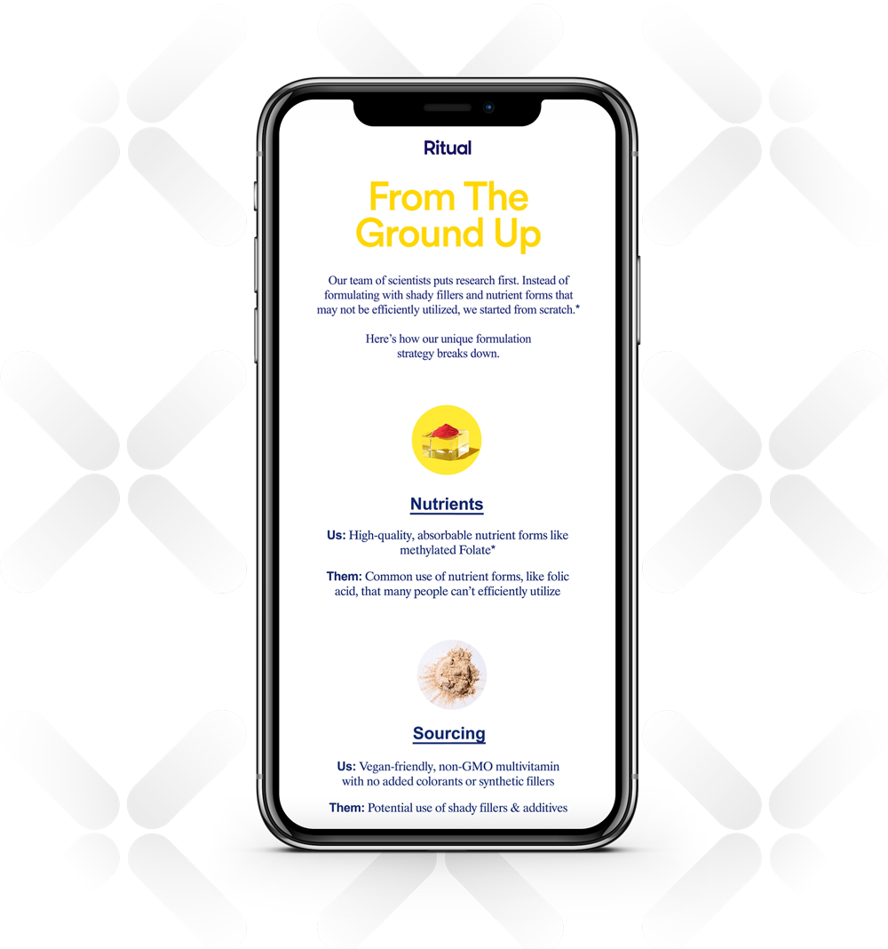 Vitamin retailer Ritual has a strong brand identity rooted in their values regarding health, science, and truth — and they sent out emails dedicated to conveying these values. They used a conversational tone to engage and connect with readers, and make information about their ingredients accessible to understand. The eye-catching design and brevity of the emails made it extra easy to consume.