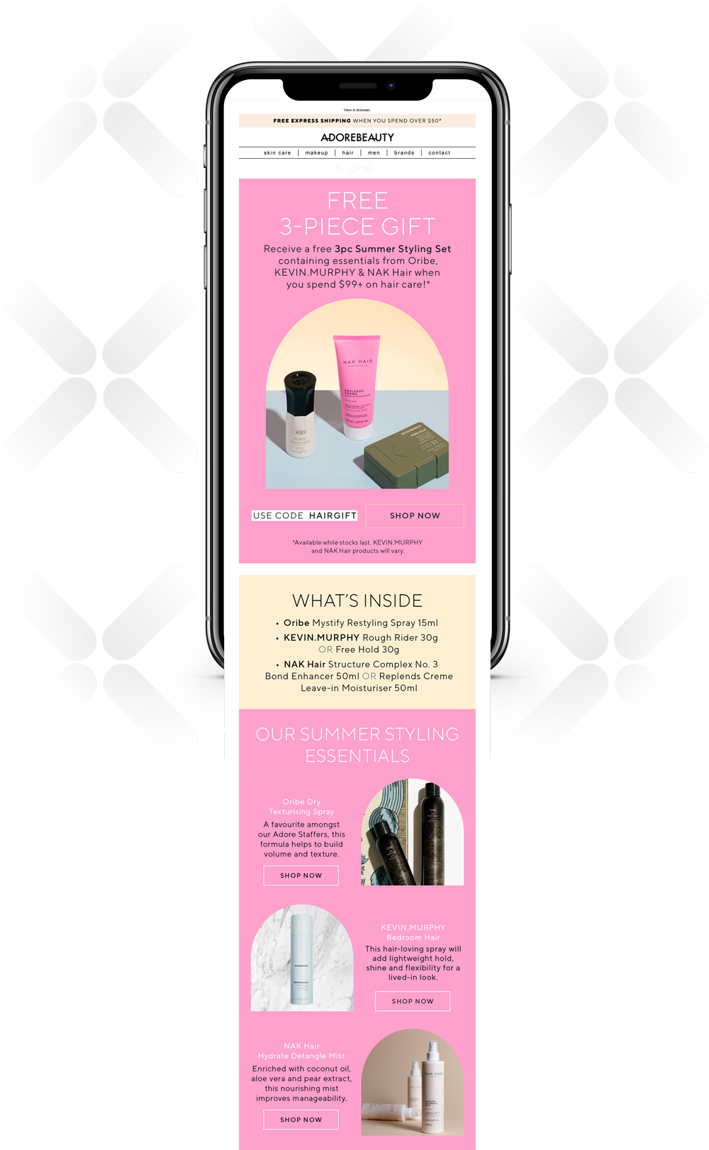 Adore Beauty focused on CTAs and GIFs to create a compelling experience for email recipients. Artfully-framed images combined with a strong offer proposition and a CTA embedded directly into a button turned a simple email into a powerful sales tool.