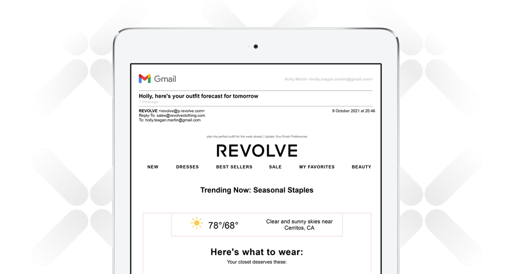 What's in a name? Everything, when used properly. Revolve used subject line-based personalization in its emails to speak directly to the recipient, standing out immediately from the flood of other emails in the average recipient's inbox and encouraging them to take a closer look.