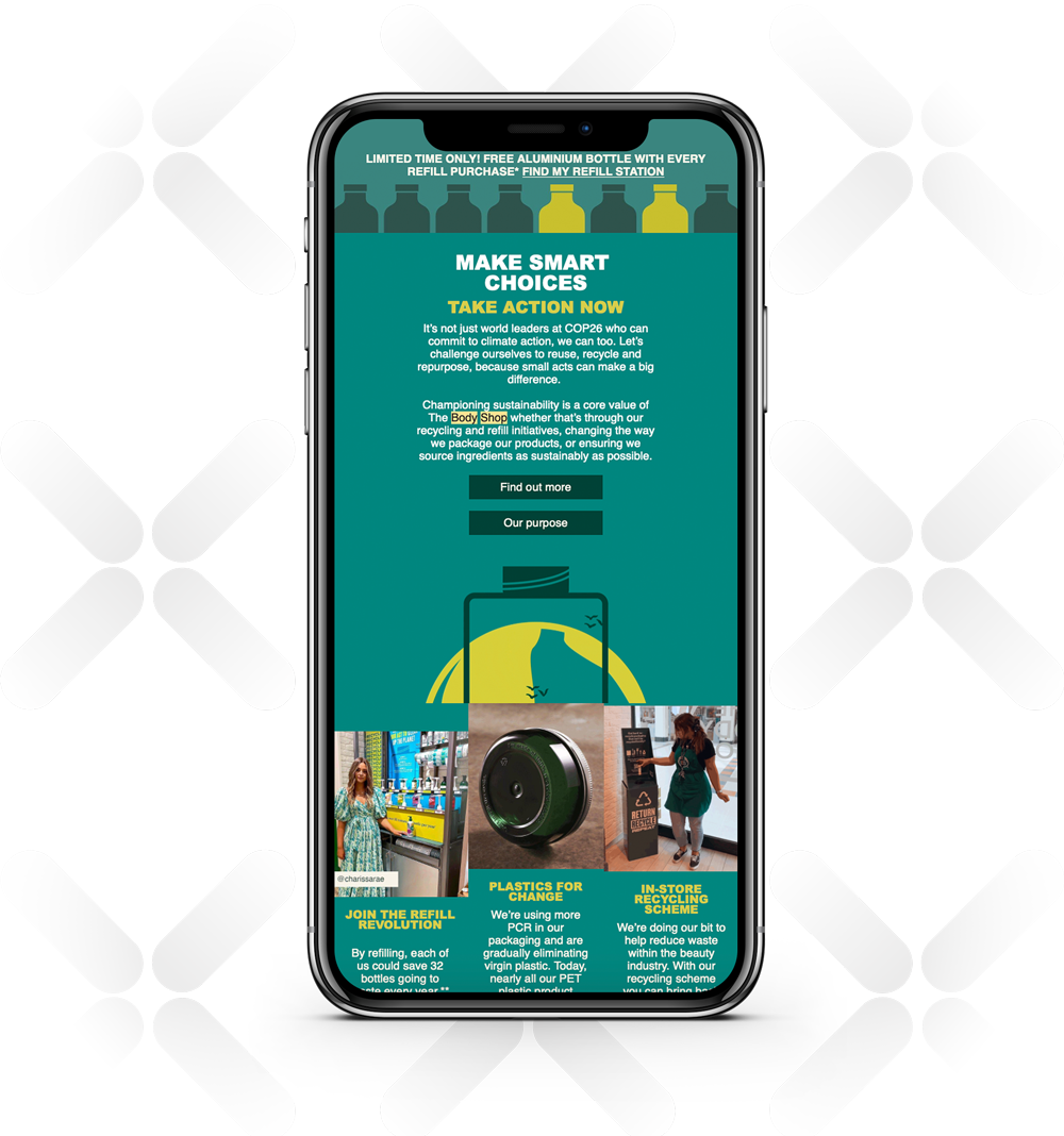 The Body Shop leveraged editorial-led emails that not only drove awareness around their sustainability efforts, but also educated consumers on the benefits of getting involved with the brand's refill programs.