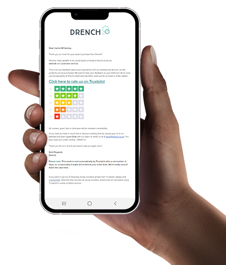 While some brands presented feedback forms as their own, brands often used third-party post-purchase feedback platforms. Drench disclosed that its feedback form came from Trustpilot.